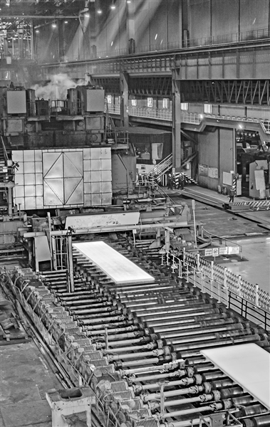4月2日,中国宝武新钢集团厚板事业部厚板轧制作业区,出口印度尼西亚的Q690E钢板订单正在有序生产中。特约通讯员 赵春亮摄