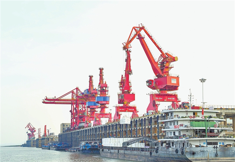 4月8日,由赛得利集团、省港口集团共建的九江港庐山港区姑塘作业区赛诚综合码头,货轮正在装载货物。