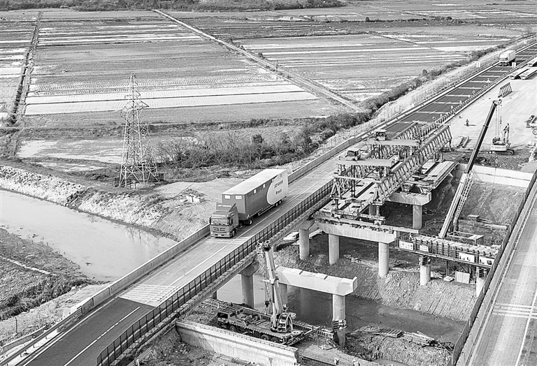 4月2日,樟吉高速改扩建项目(新余南安段)桥梁工程正在施工。 特约通讯员 赵春亮摄