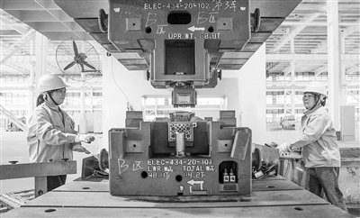 4月8日,位于南丰县的江西丰程新能源科技有限公司,工人在车间内进行冲压作业。通讯员 谢 东摄