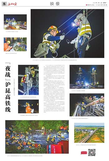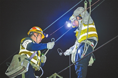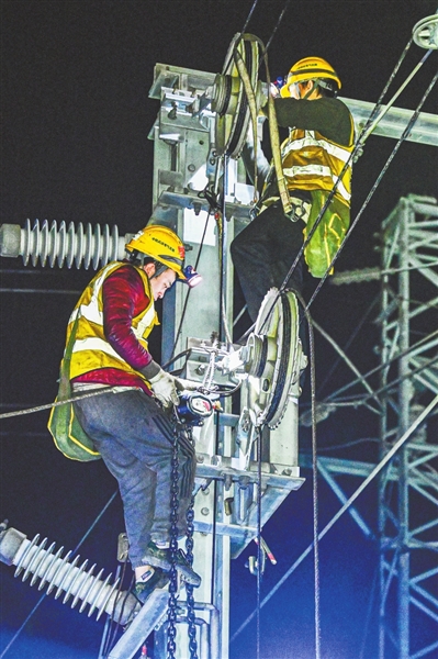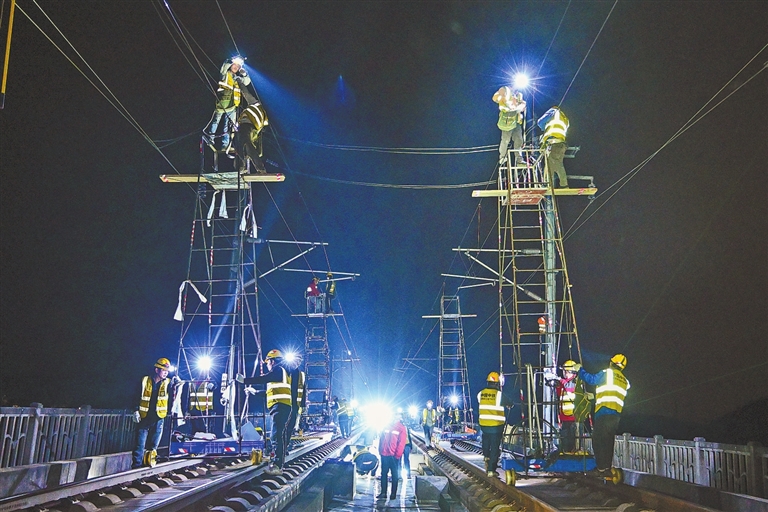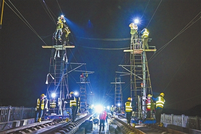 “线夹已落槽,锁片已紧固,力矩已到位……”时间紧、任务重,在距离轨面5米高的检修车梯上,两名高空作业员工正以毫米级的精度协同作业,给接触网换上新的吊弦。在4个小时的“天窗”期内,工人们要争分夺秒完成设备升级。
