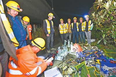 来自湖南郴州的曹振,是一名00后接触网工,负责施工现场的盯控和验收工作。今年2月中旬,曹振和其他20多名同为00后的同事完成春运大考后,如今又扛起了三级修的重担。为了不影响铁路正常运行,他们只能在每天凌晨0时至4时的“天窗”期对设备展开检修。“铁路检修到哪里,我们就住在哪里。我最长一次连续上了4天夜班,虽然挺累,但每次看到高铁准点驶过自己检修的区段,就觉得一切辛苦都值了。”曹振说。当晚,工人们共计更换了124处定位器、6.55公里的接触网吊弦以及384处杆号牌等设备。