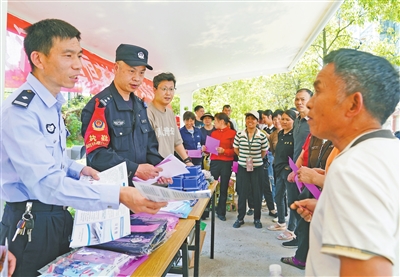4月15日,新余市渝水区袁河街道恒大社区开展全民国家安全教育日主题宣传活动,向群众宣传平安建设等知识,将国家安全教育融入居民生活。本报全媒体记者 邹宇波摄