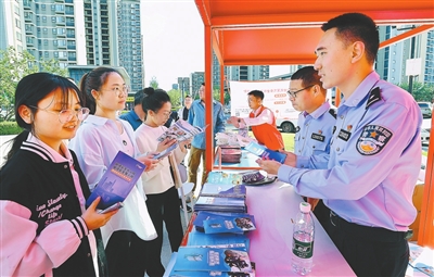 4月15日,在赣江新区万创科技城,公安民警向市民发放国家安全教育宣传资料。 本报全媒体记者 杨 静摄