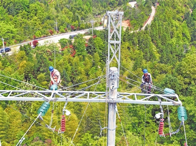 4月10日,国网会昌县供电公司工作人员在该县富城乡桂坑村路段进行避雷线架设作业,增强主网输电线路的防雷能力。特约通讯员 刘兆春摄