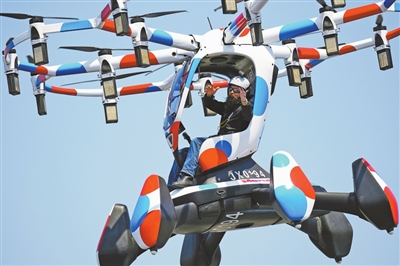 4月14日,一名飞行员在日本大阪世博会园区展示“飞行汽车”Hexa。 新华社/美联