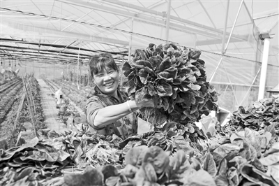 九江市柴桑区城子镇积极建设连片大棚,发展番茄、辣椒、黄瓜等蔬菜种植,带动100余名村民就业。图为4月15日,赤湖村村民在大棚里采摘蔬菜,装车发运。