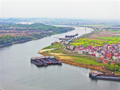 进入丰水期,全长279公里的乐安河水上运输繁忙起来。图为乐安河万年县石镇镇至乐平市镇桥镇水域停靠码头的各类运输船舶。 本报全媒体记者 徐黎明摄