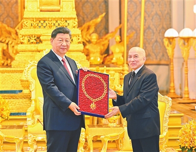 习近平表示,这枚勋章充分体现了柬埔寨对发展中柬关系的高度重视,承载着柬埔寨人民对中国人民的深情厚谊。这份荣誉不仅属于我个人,也属于所有为中柬友谊耕耘付出的友好人士。