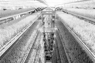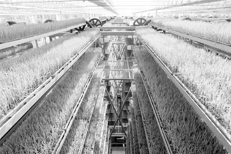 4月16日,位于广昌县甘竹镇图石村的甘竹农事服务中心育秧工厂内,4组自动化育秧设备上秧苗郁郁葱葱。据了解,单组自动化育秧设备培育的早稻秧苗可供150亩农田使用。
