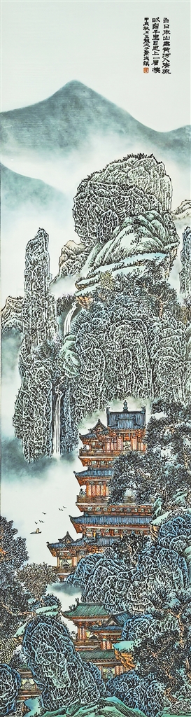 瓷上界画,是指在瓷板瓷器上创作的界画。界画,即在作画时使用界尺引线,故名。中国界画起源早,东晋顾恺之、隋代展子虔,以及宋代郭忠恕、明代仇英、清代袁江和袁耀等均为界画高手。历代名家留下的界画作品,成为我们今天宝贵的财富和艺术创作取法的经典。在瓷上创作界画,在我国也有传统,清代紫禁城曾收藏有大量瓷上界画作品;景德镇“珠山八友”中的何许人创作的许多雪景楼阁题材作品也属瓷上界画。