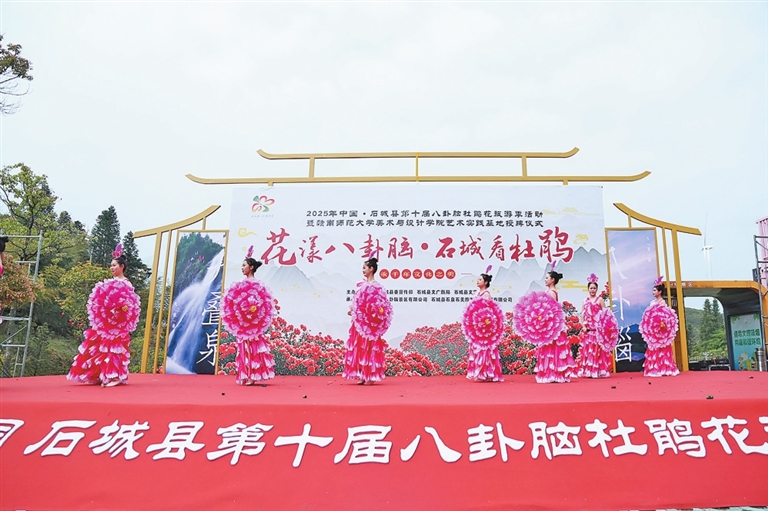 4月18日,石城县第十届八卦脑杜鹃花系列活动启幕,本次活动以“花漾八卦脑 石城看杜鹃”为主题,向八方游客发出邀约。启动仪式后,游客沿着栈道在杜鹃花海中或漫步游玩,或拍照打卡,尽享春日美景。陈钰芳摄