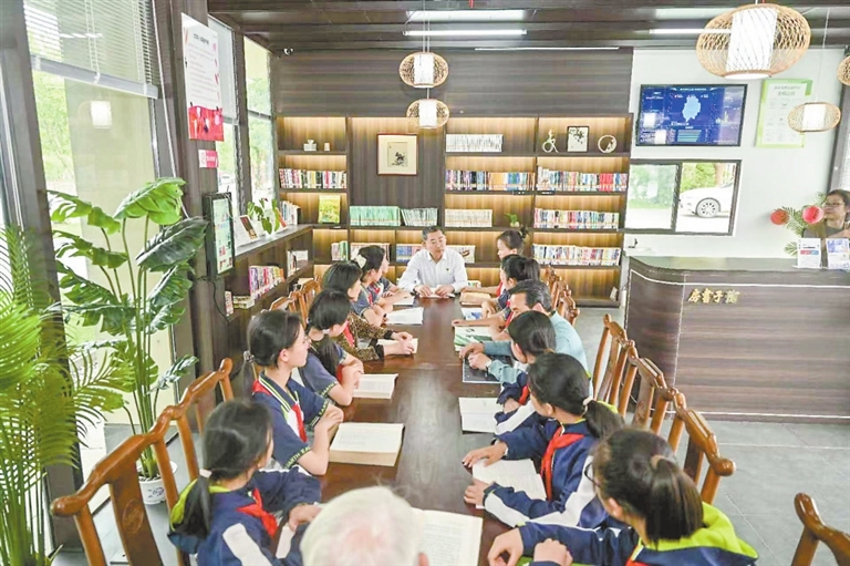 4月17日,南昌市青云谱区岱山街道梅湖社区在孺子书房举办读书分享活动,辖区老党员与来自南昌市定山小学的学生齐聚一堂,共享阅读乐趣。本报全媒体首席记者 李 劼摄