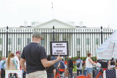 4月19日,人们在美国首都华盛顿白宫门前参加抗议活动。