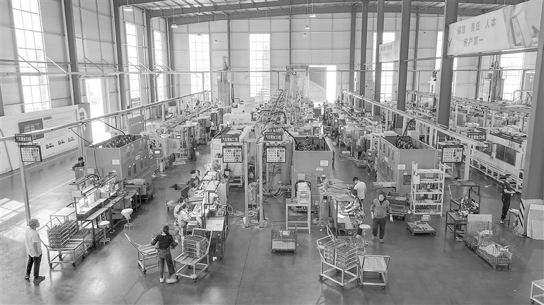 4月16日,德兴市空调配件企业生产车间里,工人正抓紧生产空调配件产品。近年来,德兴市落实一系列减税降费政策,促进企业提质增效。