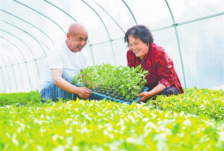 脱贫户祝荣生的经历颇具代表性,每天一大早,他就在村里的西瓜种苗基地忙碌起来。“我在种苗基地主要负责选苗、搬苗、打包等工作,既能赚钱又能顾家。”祝荣生说,每年除了上万元务工收入,他还通过销售西瓜种苗增收2万多元,日子越过越有奔头。