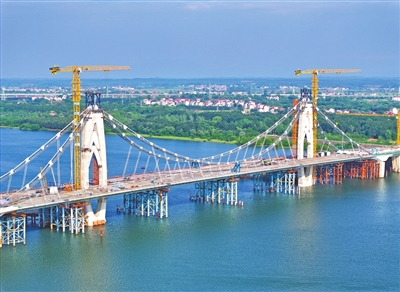 4月21日,泰和县澄江大桥项目正在进行吊索施工。该项目是省重点工程,由中交二航局承建,将于今年底完工。