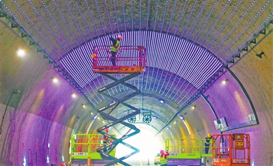 4月21日,新余市智慧绕城建设工程国道G533仰天岗隧道段,工人正在安装智慧交通设施。该工程通过实时监测与预警系统等项目建设,实现道路安全提升和智能化管理。