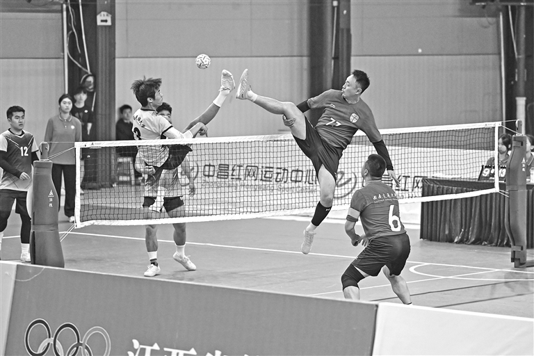 4月24日,2025年全国藤球锦标赛在南昌经开区中昌红网运动中心开赛。该锦标赛是国内规格最高的藤球赛事,吸引了来自全国的19支队伍、180余名运动员参赛。本报全媒体记者 洪子波摄