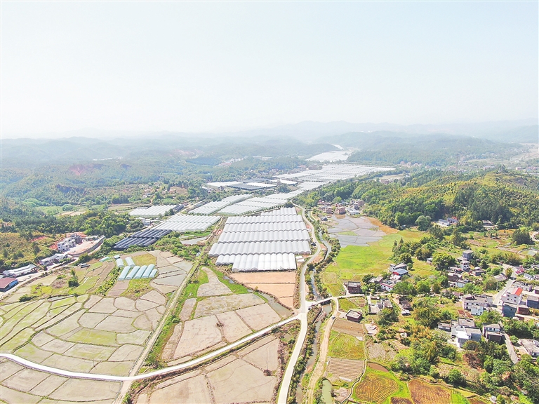 近日,在定南县历市镇太公村,一排排蔬菜大棚与田野、村庄相映成趣,一幅春日田园美景图徐徐铺展。近年来,定南县大力发展设施农业,通过推行规模化、标准化大棚种植,发展蔬菜、瓜果等特色产业,进一步壮大“大棚经济”,促进农业增效、农民增收,助力乡村振兴。郭水华摄