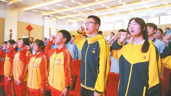 “我志愿加入中国共产主义青年团,坚决拥护中国共产党的领导……”4月25日,在五四青年节即将到来之际,南昌高新区举行2025年上半年新团员入团仪式,550名优秀中学生在团旗下庄严宣誓。赵 阳摄