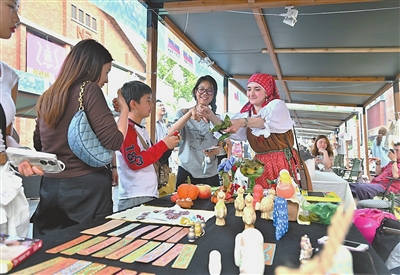 5月2日,2025年陶溪川春秋大集现场人山人海,800多名国内外艺术家、手艺人汇聚一堂,四大特色主题集市与艺术展览、演出等多项文化活动精彩纷呈。图为游客在外国艺术家摊位前挑选工艺品。 本报全媒体首席记者 李 劼摄