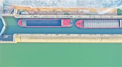 今年一季度,赣江船闸通航中心龙头山船闸过闸船舶总计3727艘,货物通过量313万吨,同比分别增长532%、427%。其中,矿石、矿物性建筑材料运输量均刷新船闸货运量增长纪录。图为4月28日,船舶有序通过赣江船闸通航中心龙头山船闸。本报全媒体记者 吴文兵摄