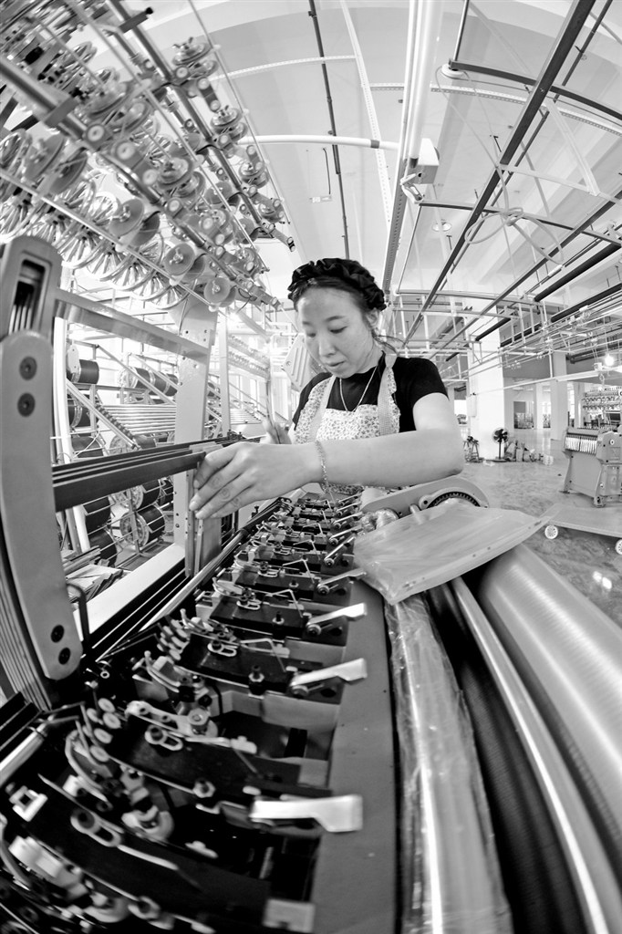 5月1日,在会昌县鸿源隆织造有限公司生产车间,工人正在赶制订单。通讯员 吕春华摄