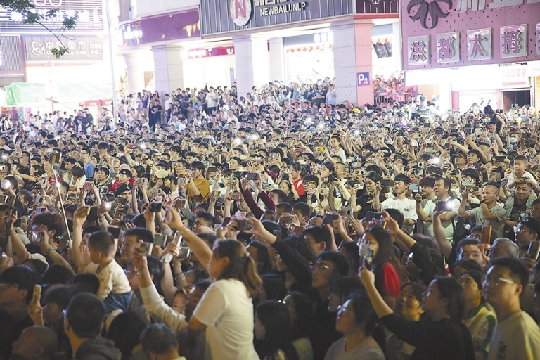 新升级的“光影八一”灯光秀成了今年“五一”假期南昌的新惊喜,不少游客早早就到现场等待,只为寻得一个绝佳的观看视角,八一起义纪念馆外的道路上又现人山人海的景象。据主办方介绍,这几天,有数万名市民游客参与了这场沉浸式红色视听盛宴。