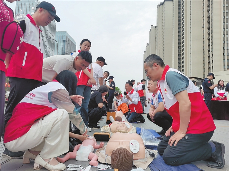 5月6日,上饶市广信区红十字会在吾悦广场开展应急救护培训活动,提升市民应急救护技能。