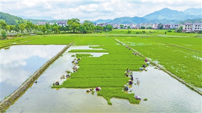 正值立夏节气,各地农民抢抓农时开展农事活动,田间地头一派忙碌景象。图为5月5日,新干县溧江镇沧洲村农民在田里拔秧。特约通讯员 李福孙摄