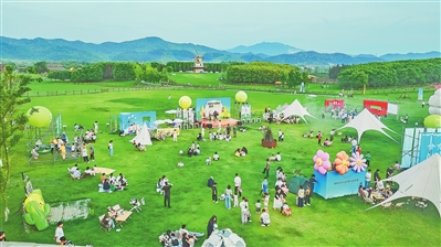 下了火车,记者登上空中长廊,一栋栋树屋民宿错落有致。长廊下方,还有造型俏皮的萌屋酒店和蔷薇环绕的帐篷酒店。“园区共有各种形态的客房80多套,‘五一’的前一周就全部订满,最贵的一晚3000元,普通的也要七八百元。”易愉说。