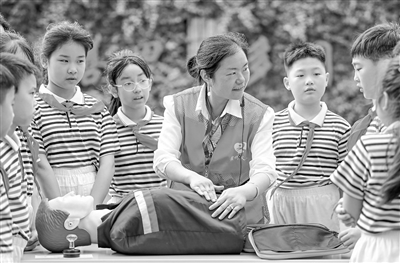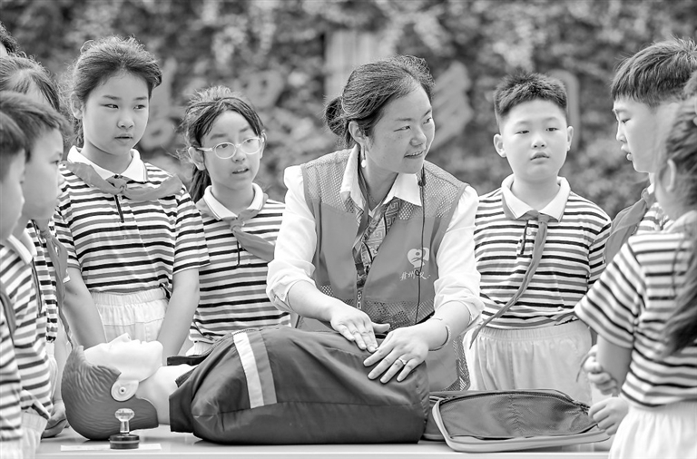 近日,赣州市大公路第一小学联合赣州市义工协会开展“学急救知识 为生命护航”主题活动,将专业急救课堂搬进校园,不断提升师生应急救护能力。图为5月8日,该小学学生正在学习急救知识。特约通讯员 胡江涛摄