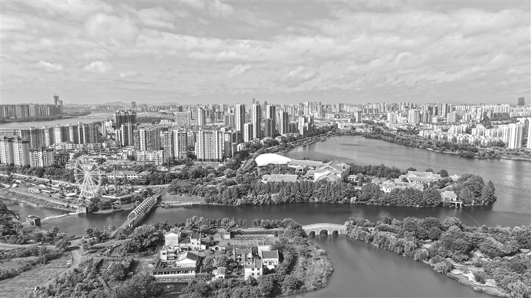 5月8日,航拍下的吉安市吉州区庐陵文化生态园,碧水涟涟,草木葱郁,令人赏心悦目。特约通讯员 李 军摄