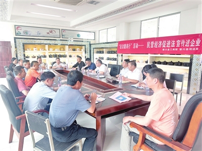 5月9日,黎川县委统战部联合县工商联、县司法局共同开展“法治赣商行”专题普法活动,组织专业律师团队深入企业宣讲民营经济促进法。洪旺建摄