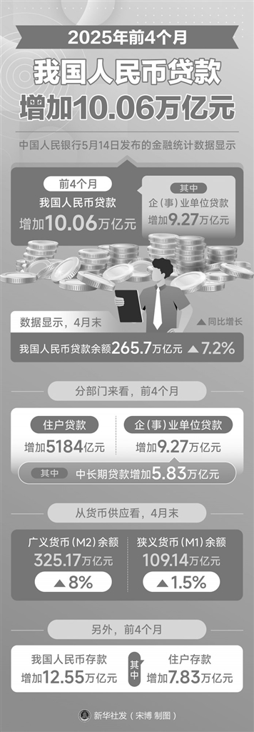 “4月是季初信贷‘小月’,但从前4个月新增贷款超10万亿元来看,总量保持平稳,为经济回升向好提供了有力支持。”清华大学国家金融研究院院长田轩认为,4月新增贷款约2800亿元,在还原地方债务置换影响后,当月信贷增速依然保持较高水平。同时,社会融资规模增速继续加快,M2余额保持在320万亿元以上,这些保障了实体经济的融资需求。