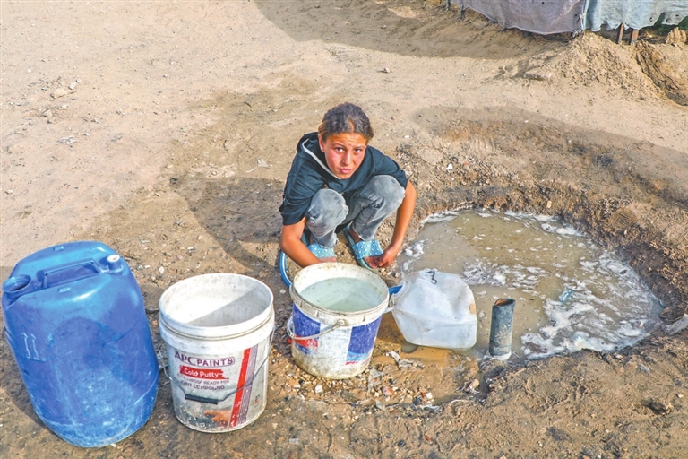 这是5月13日在加沙一个流离失所者的临时营地拍摄的儿童。新华社发(里泽克·阿卜杜勒贾瓦德摄)