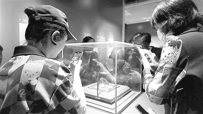 台湾媒体记者在南昌汉代海昏侯国遗址博物馆拍摄刘贺玉印。吴雅雯摄
