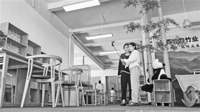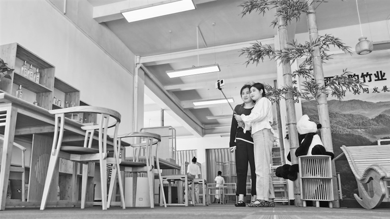 “中国竹子之乡”宜丰县构建全竹产业链,让好资源变成好产业。图为近日,游客在黄垦镇民营企业——竹韵竹业集团竹家居体验馆打卡。特约通讯员 何贱来摄