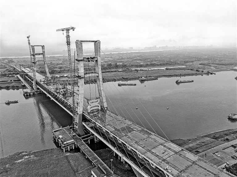 桥梁建设过程中,面对赣江复杂水文条件,建设团队自主研发“摩擦式组合顶推”工艺,并通过建筑信息模型(BIM)技术构建全桥三维模型,对2.3万个节点实施毫米级监控。通过摩擦型滑移控制系统,确保万吨级钢梁在6级江风中稳如磐石,位移精度±5毫米,如同在江面上完成“精密拼图”。