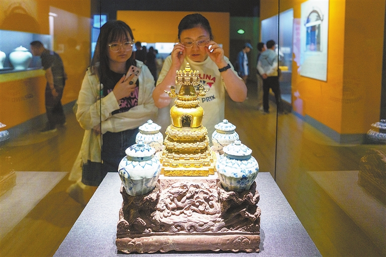 蓝釉爵杯陈列在静谧的时空窖藏、元代石刻融入徽派雕刻长廊……安徽徽州历史博物馆以“精品文物群”为重点,对特色文物进行针对性展陈,营造沉浸式的观展环境。