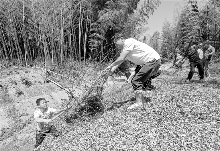 5月14日,在金溪县琉璃乡澳塘村,当地党员志愿者走进田间地头,对该村淤堵不通、水流不畅的灌渠实施清淤作业。