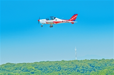 近年来,江西大力发展低空经济,助推多元化新场景落地应用、带动低空经济相关产业发展。图为5月14日,在共青城市南湖机场,一架单翼螺旋桨飞机呼啸升空,学员正在进行实飞训练。