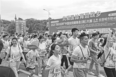 5月18日,2025“新长征杯”中国全民健身走(跑)大赛(江西瑞金站)全国城市联动接力赛在瑞金市中央革命根据地历史博物馆广场鸣笛起跑,比赛吸引了来自全国各地近5000名选手参加。本报全媒体记者 李 征摄