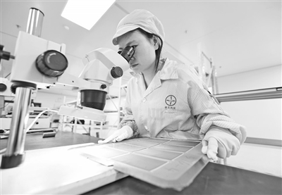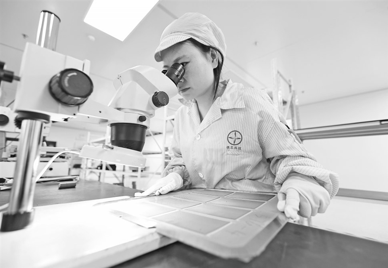 德兴市通过出台优惠政策、建设产业园区、引入重点企业等举措,大力推动电子信息及“智造”产业集群发展。图为近日,位于德兴高新技术产业园区的德芯科技有限公司,工人在进行芯片终端检测。本报全媒体记者 徐 铮摄