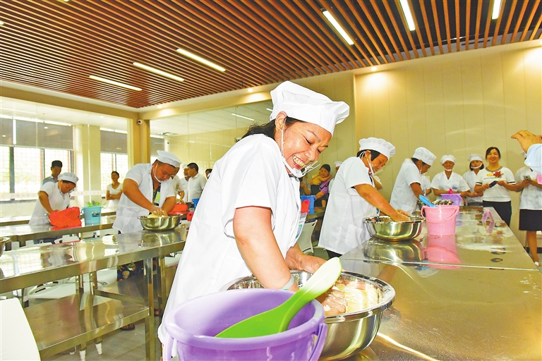 在北麓湾产业园的创业孵化基地,标准化培训课正在开展,一双双手在面案上“起舞”。崇义水饺技艺传承人陈阿婆将褶纹技艺分解为“提、捏、捻”三式绝活,年轻学员的手机镜头记录着每个细节。墙上既有《崇义水饺技艺图谱》的图文详解,也有现代餐饮管理课程表。这种“传统技艺+商业思维”的复合培养模式,让走出课堂的年轻人既能守住传统之魂,又能驾驭市场之舟。
