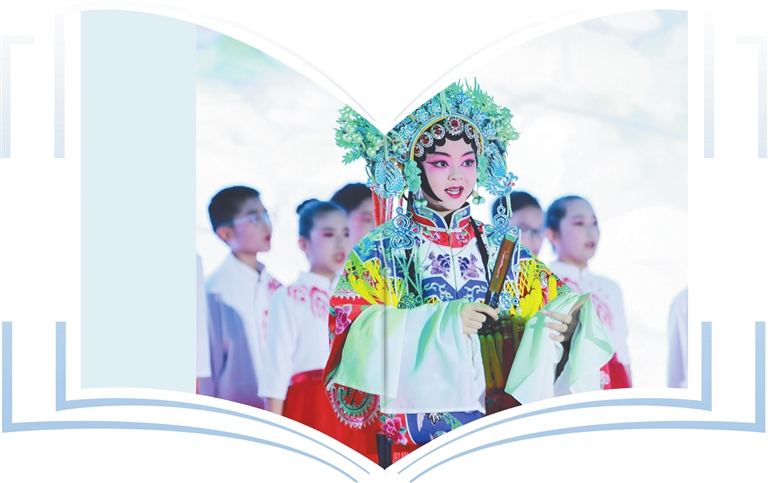 5月10日,江西师范大学附属中学滨江分校二部举办“和美”凤凰二十周年暨红谷滩区第五季读书分享会活动。图为孩子们现场演出京剧,展示学校“五育”并举成效。