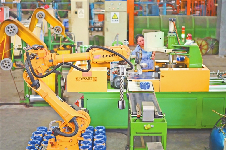 近年来,瑞金市立足资源优势,扩大铜加工产品种类,加大工业机器人、智能机械臂、自动导引车等设备运用力度。图为瑞金经济开发区的一家电线电缆企业工人赶制出口的铜线订单产品。
