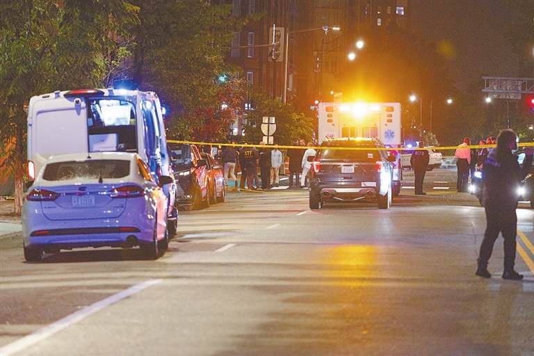 5月22日,警察在美国华盛顿的案发现场附近工作。美国国土安全部部长克丽丝蒂·诺姆21日说,以色列驻美使馆两名工作人员当晚在首都华盛顿一家博物馆附近中枪身亡。美国总统特朗普谴责这一“可怕”事件。