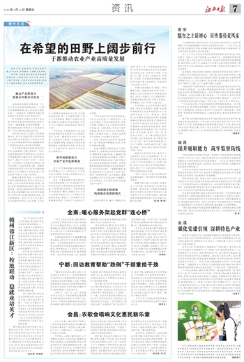 近年来,于都县紧扣农业农村高质量发展主线,以创新为笔、实干为墨,绘就了一幅产业兴旺、乡村秀美的壮丽画卷,奏响了一曲城乡融合、协同共进的激昂乐章。